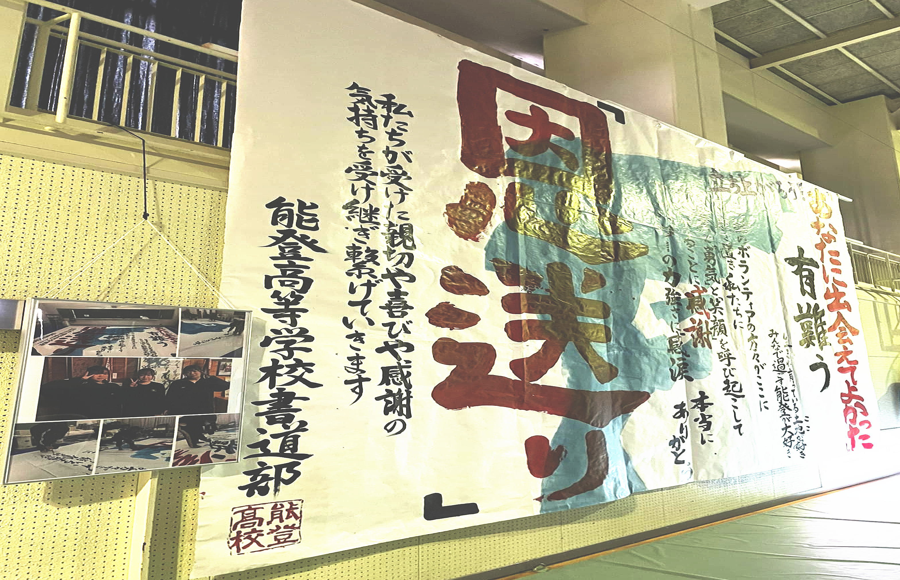 この体育館に記載の言葉と力強い文字に胸が熱くなりました